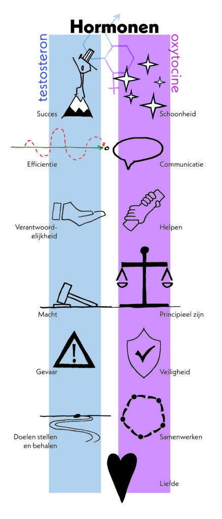 Biologisch gezien zijn mannen en vrouwen fundamenteel verschillend. Hormoonpatronen geven ritme en energie een andere kleur: testosteron versterkt actie, focus en doelgerichtheid, terwijl oestrogeen en progesteron een cyclisch ritme creëren dat intuïtie, emotioneel bewustzijn en relationele waarneming versterkt. Men spreekt wel van een “zon-ritme” bij mannen — cyclus van 1 dag; gericht op doel, lineaire voortgang en confrontatie — en een “maan-ritme” bij vrouwen — cyclus van 28 dagen; gericht op reflectie, afstemming en timing.